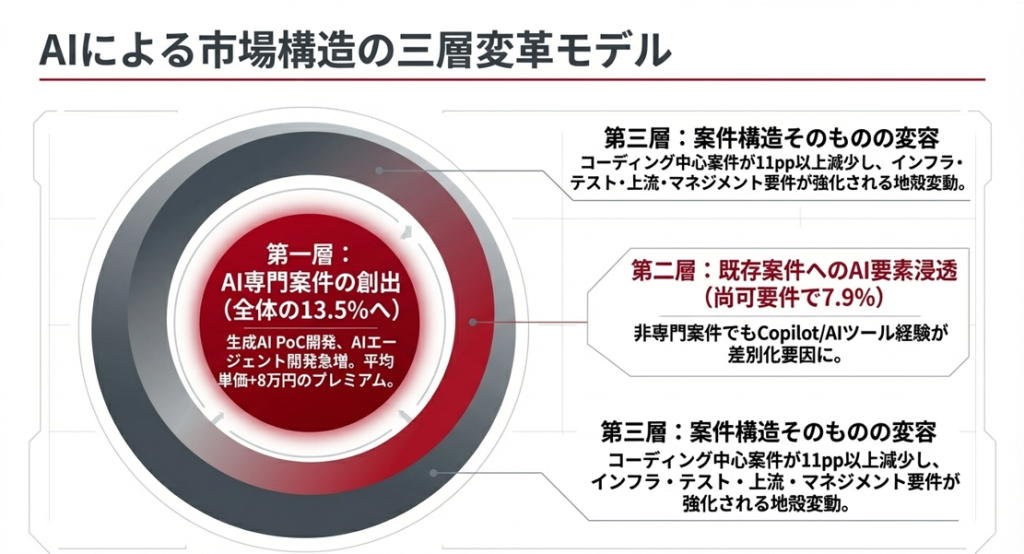 | AI案件の増加 | 6.5%→13.5%(1年で倍増) | 企業のAI活用が実験→実運用フェーズへ移行 |